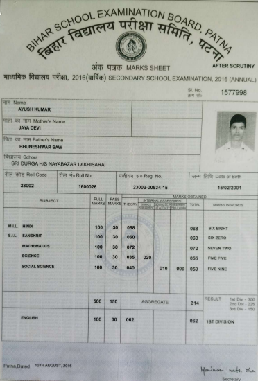 | Exam | Full Marks | Pass Marks | Marks Obtained |