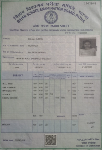| Exam | Full Marks | Pass Marks | Marks Obtained |