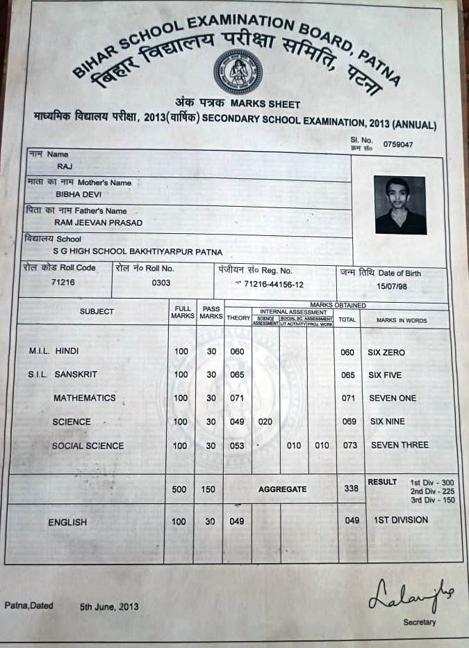 | Exam | Full Marks | Pass Marks | Marks Obtained |