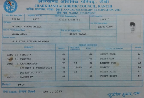 | Exam | Full Marks | Pass Marks | Marks Obtained |