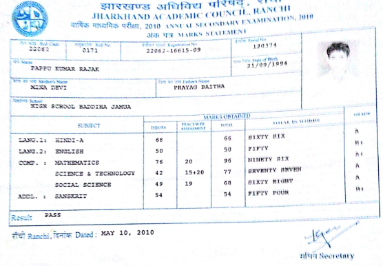 | Exam | Full Marks | Pass Marks | Marks Obtained |