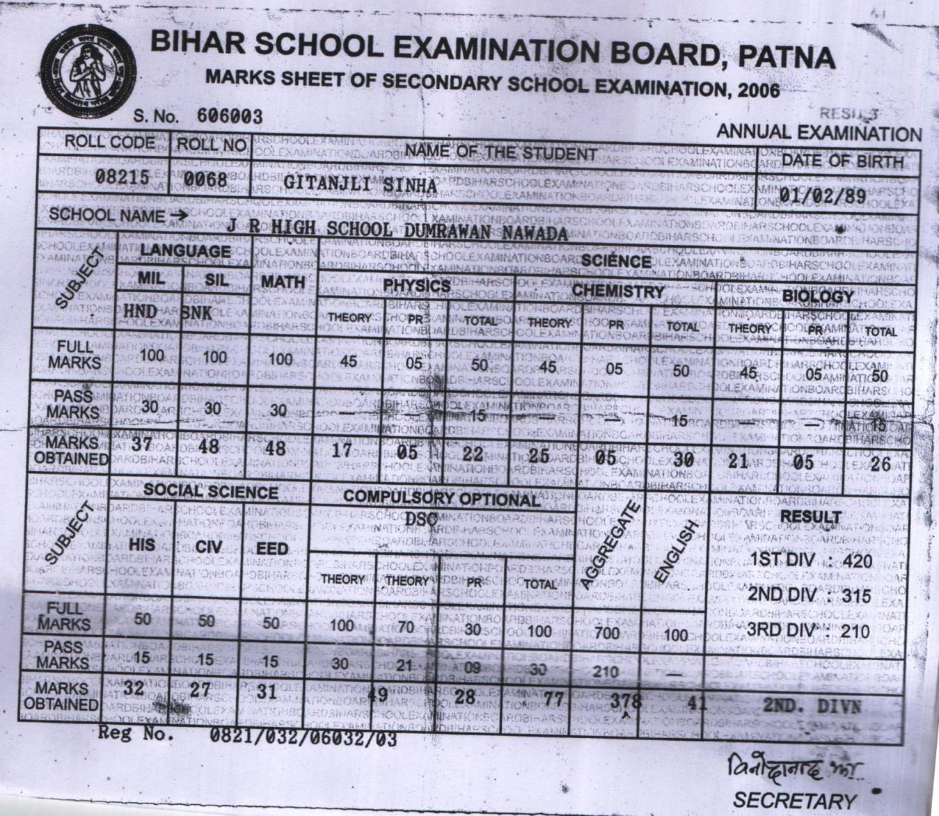 | Exam | Full Marks | Pass Marks | Marks Obtained |