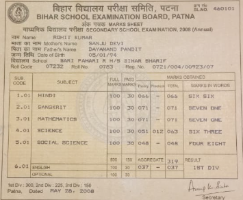 | Exam | Full Marks | Pass Marks | Marks Obtained |