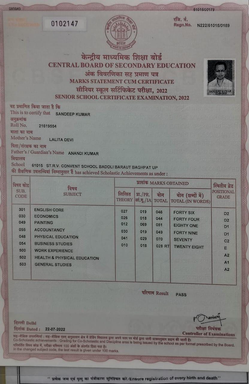 | Exam | Full Marks | Pass Marks | Marks Obtained |