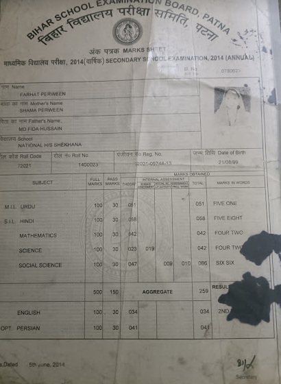| Exam | Full Marks | Pass Marks | Marks Obtained |