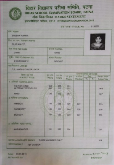 | Exam | Full Marks | Pass Marks | Marks Obtained |