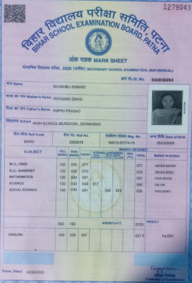 | Exam | Full Marks | Pass Marks | Marks Obtained |