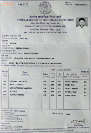 | Exam | Full Marks | Pass Marks | Marks Obtained |