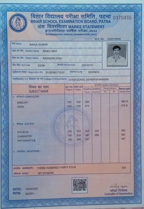 | Exam | Full Marks | Pass Marks | Marks Obtained |