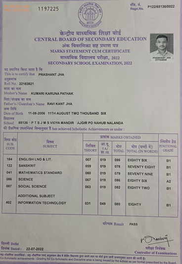 | Exam | Full Marks | Pass Marks | Marks Obtained |