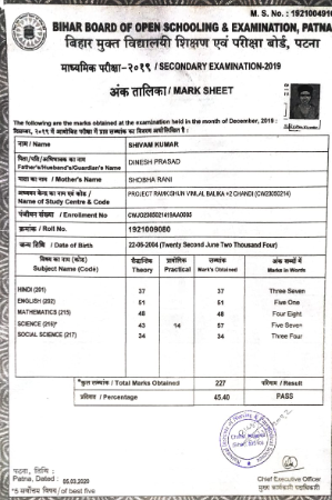 | Exam | Full Marks | Pass Marks | Marks Obtained |