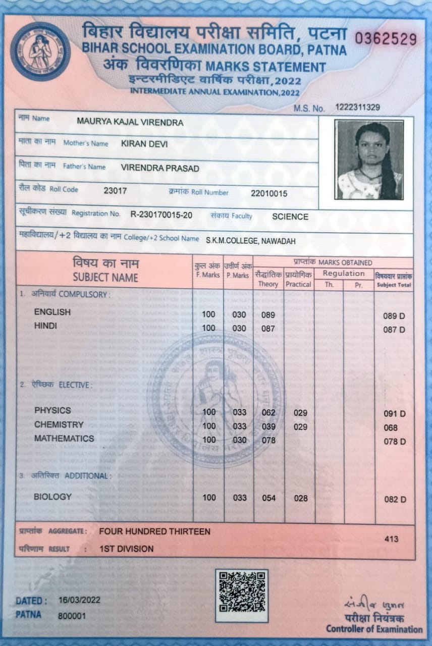 | Exam | Full Marks | Pass Marks | Marks Obtained |