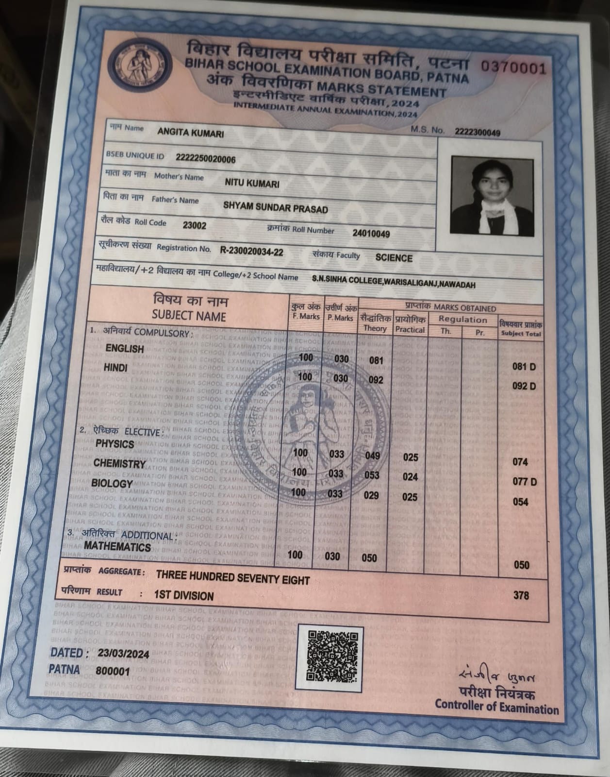 | Exam | Full Marks | Pass Marks | Marks Obtained |