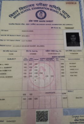 | Exam | Full Marks | Pass Marks | Marks Obtained |