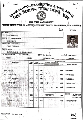 | Exam | Full Marks | Pass Marks | Marks Obtained |