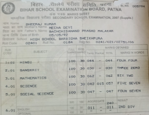 | Exam | Full Marks | Pass Marks | Marks Obtained |