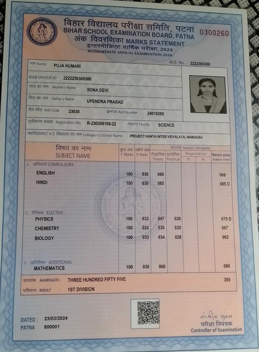 | Exam | Full Marks | Pass Marks | Marks Obtained |