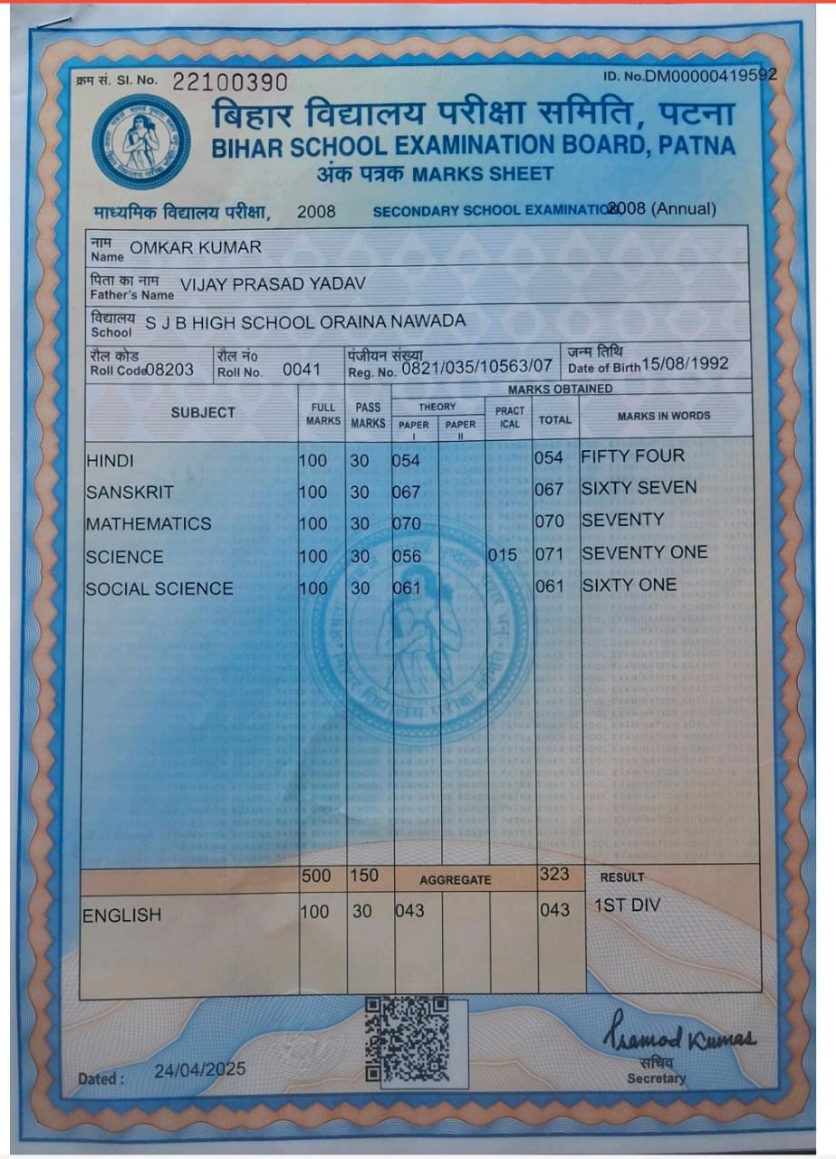 | Exam | Full Marks | Pass Marks | Marks Obtained |