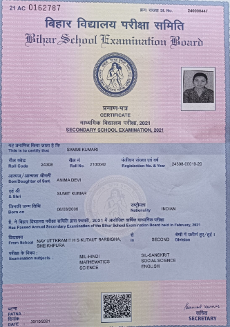 | Exam | Full Marks | Pass Marks | Marks Obtained |