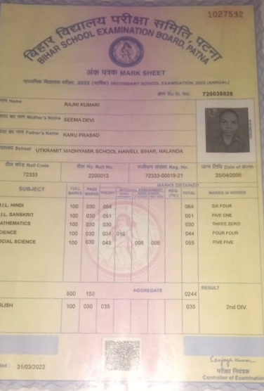 | Exam | Full Marks | Pass Marks | Marks Obtained |