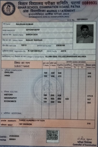 | Exam | Full Marks | Pass Marks | Marks Obtained |