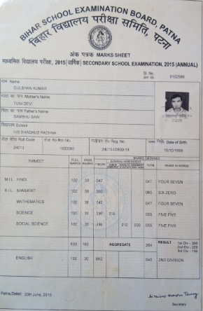 | Exam | Full Marks | Pass Marks | Marks Obtained |