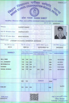 | Exam | Full Marks | Pass Marks | Marks Obtained |
