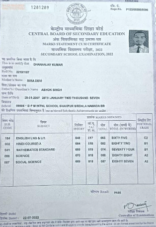 | Exam | Full Marks | Pass Marks | Marks Obtained |