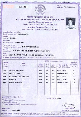 | Exam | Full Marks | Pass Marks | Marks Obtained |