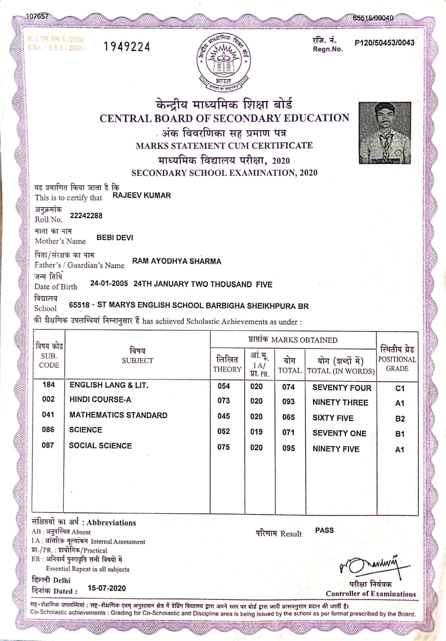 | Exam | Full Marks | Pass Marks | Marks Obtained |