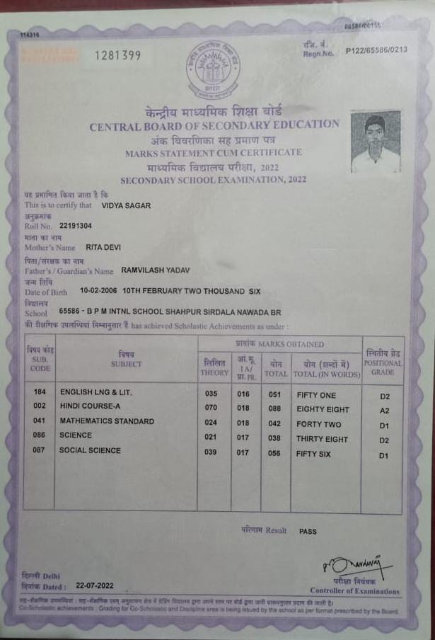 | Exam | Full Marks | Pass Marks | Marks Obtained |