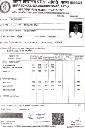 | Exam | Full Marks | Pass Marks | Marks Obtained |