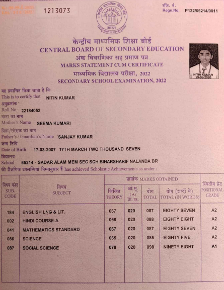 | Exam | Full Marks | Pass Marks | Marks Obtained |