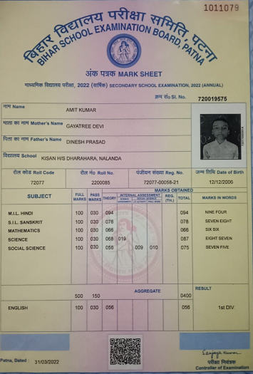 | Exam | Full Marks | Pass Marks | Marks Obtained |