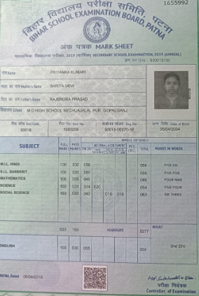 | Exam | Full Marks | Pass Marks | Marks Obtained |