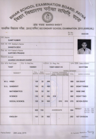 | Exam | Full Marks | Pass Marks | Marks Obtained |