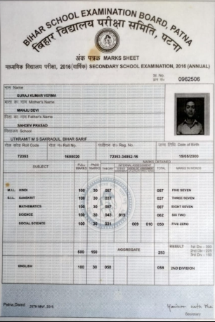 | Exam | Full Marks | Pass Marks | Marks Obtained |