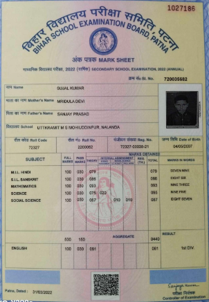 | Exam | Full Marks | Pass Marks | Marks Obtained |