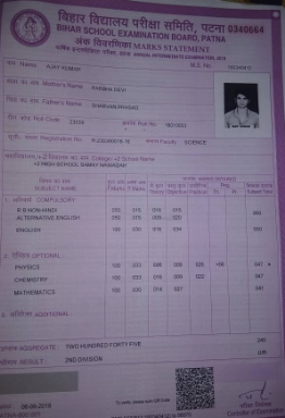 | Exam | Full Marks | Pass Marks | Marks Obtained |