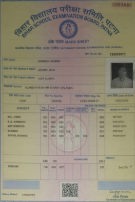 | Exam | Full Marks | Pass Marks | Marks Obtained |