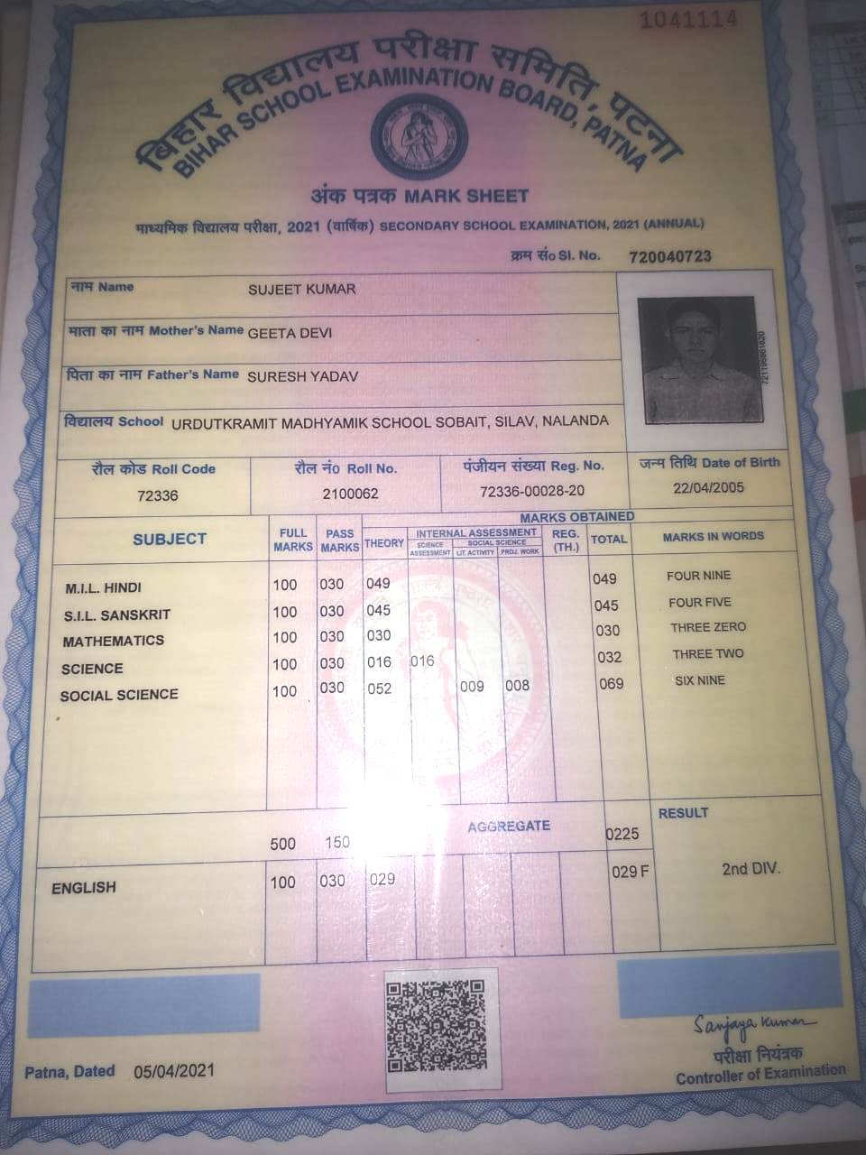 | Exam | Full Marks | Pass Marks | Marks Obtained |
