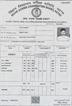 | Exam | Full Marks | Pass Marks | Marks Obtained |