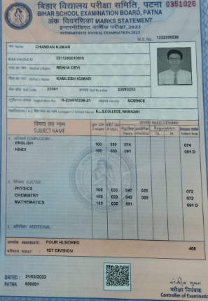 | Exam | Full Marks | Pass Marks | Marks Obtained |