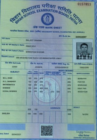 | Exam | Full Marks | Pass Marks | Marks Obtained |