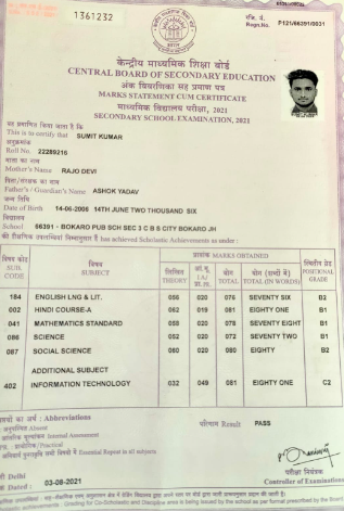 | Exam | Full Marks | Pass Marks | Marks Obtained |