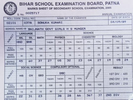 | Exam | Full Marks | Pass Marks | Marks Obtained |