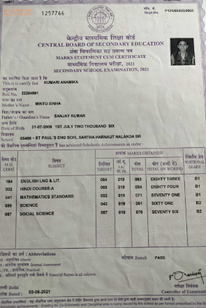 | Exam | Full Marks | Pass Marks | Marks Obtained |