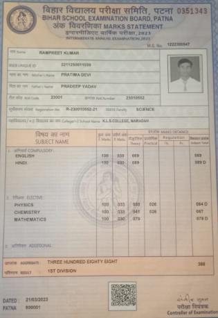 | Exam | Full Marks | Pass Marks | Marks Obtained |