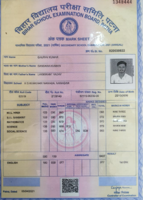 | Exam | Full Marks | Pass Marks | Marks Obtained |