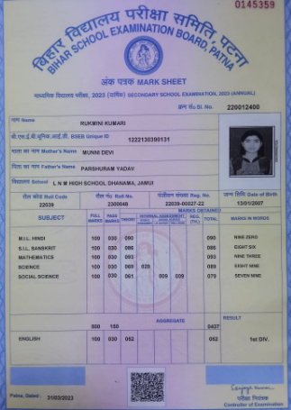 | Exam | Full Marks | Pass Marks | Marks Obtained |